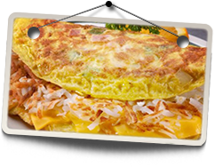 All made with three extra large Grade A eggs and choice of American, Swiss, cheddar or feta cheese. Served with hash browns, toast & jelly.